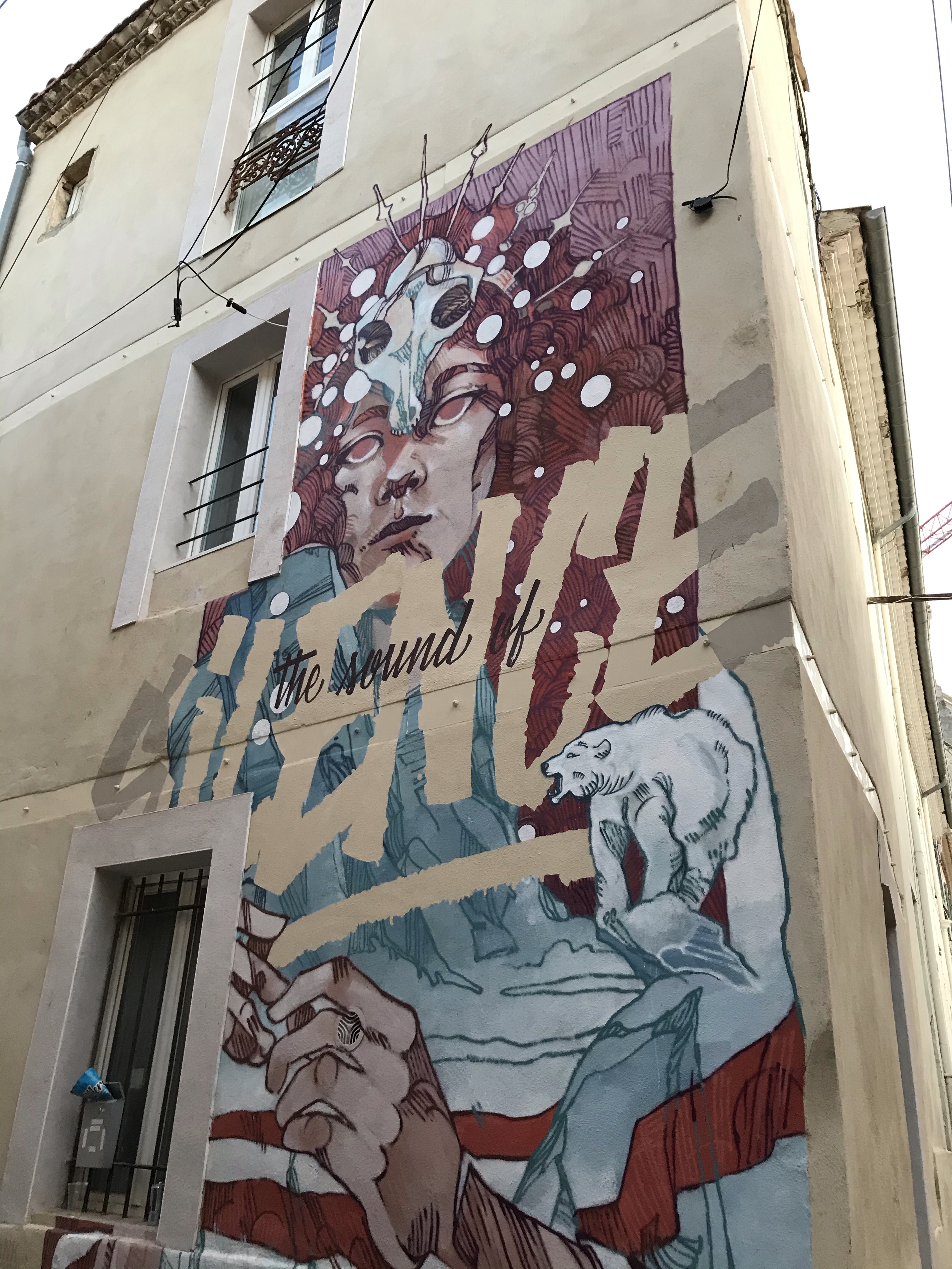Nîmes est une ville d’Occitanie habitée par un peu plus de 150 000 coureurs et coureuses potentiel-le-s. Riche de nombreux monuments romains extrêmement bien conservés, c’est un vrai bonheur de s’y promener de jour comme de nuit. Les petites ruelles de son centre historique, ses arènes, c’est simple Nîmes a été le coup de cœur de ce roadtrip en France. Au delà de son patrimoine historique qui se pose là bien comme il faut pour vous en mettre plein les mirettes, la ville possède aussi au nord des arènes, plus précisément dans le quartier Gambetta, de nombreuses murales qui méritent vraiment le coup d’oeil!