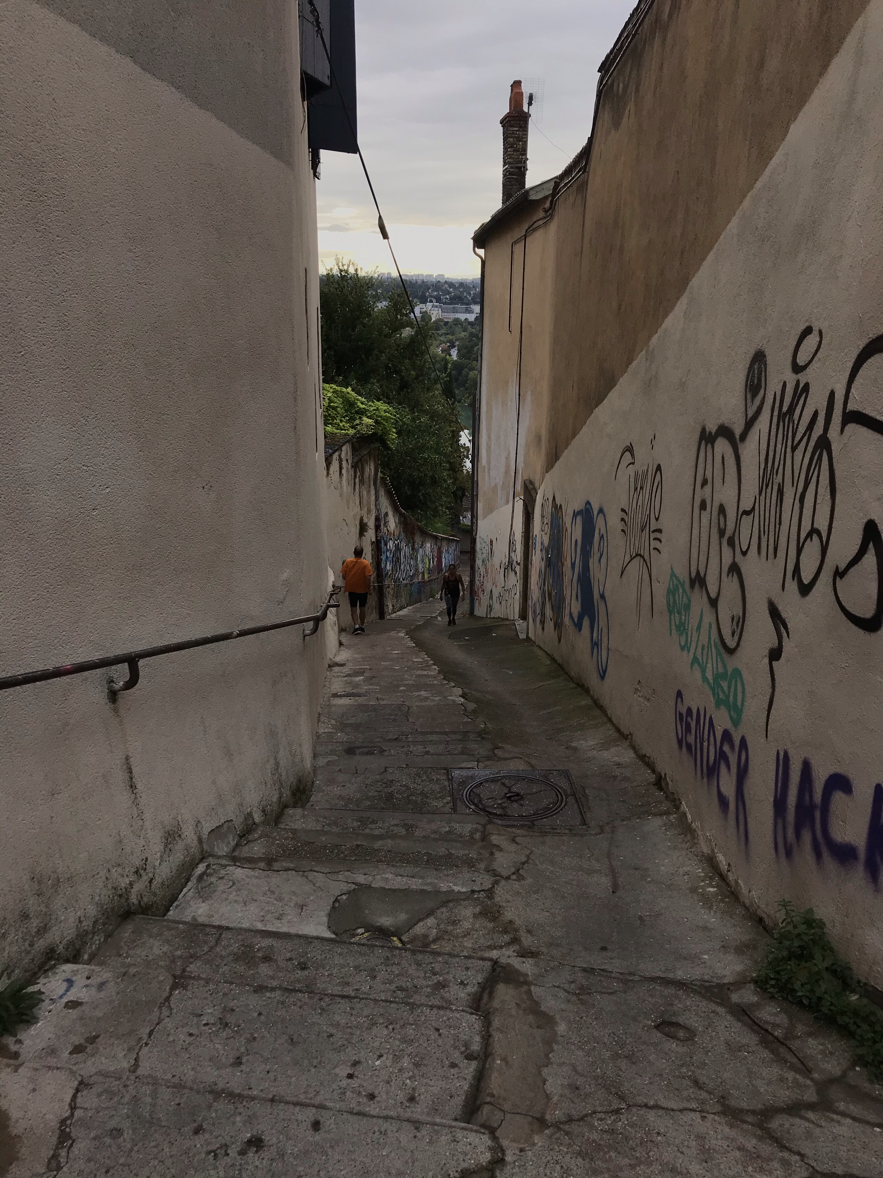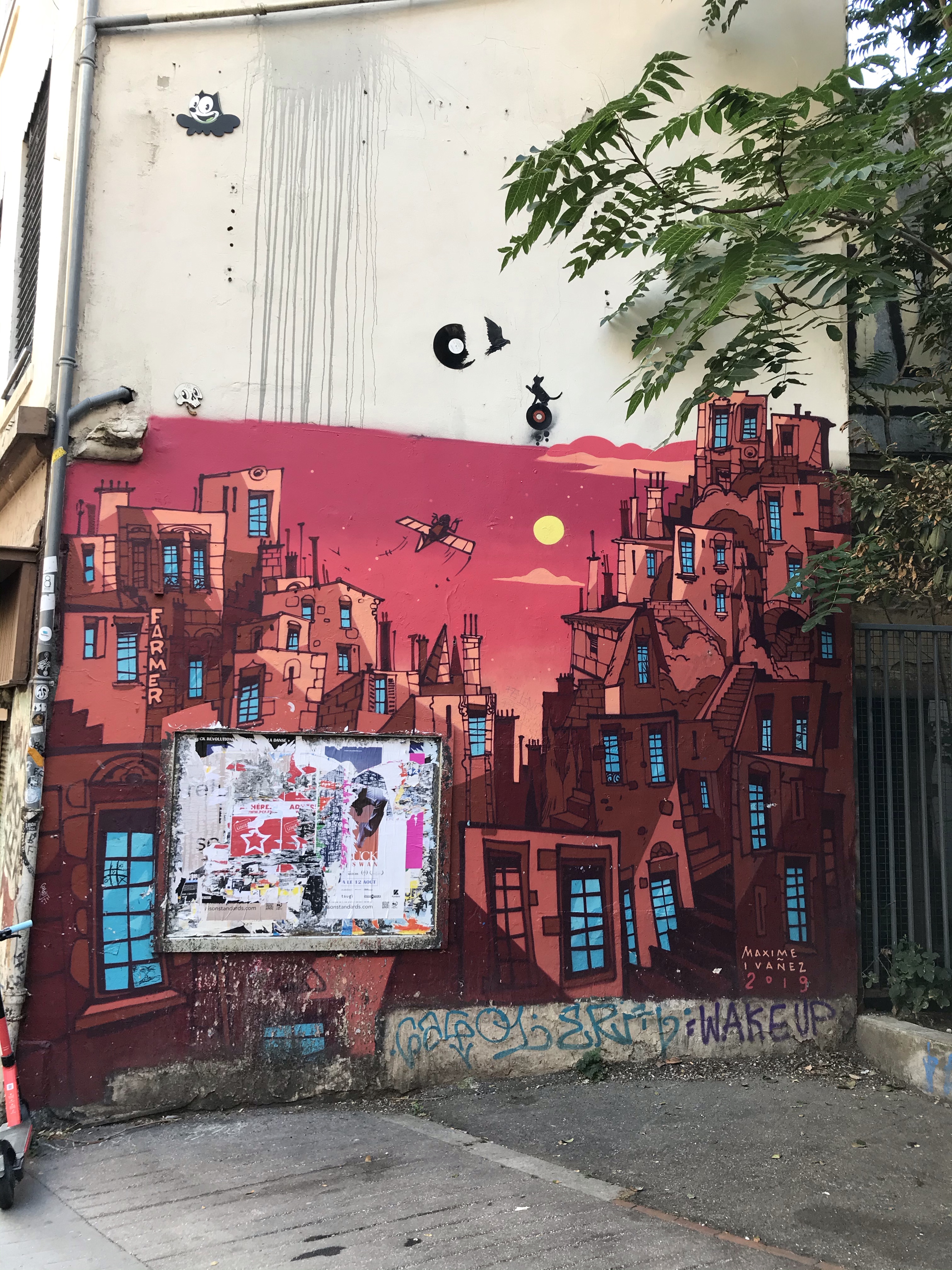 Quatre choses m’ont vraiment marqué à Lyon. Un, clairement à Lyon, on sait bien manger, et il y a vraiment moyen de faire plaisir à nos papilles. Ceci n’est pas non plus totalement une surprise, la gastronomie locale étant mondialement reconnue. Deux, la ville est juste magnifique et s’y promener/courir y est très agréable. Trois, on y trouve vraiment beaucoup de street art sur place et le style est assez différent de ce que j’ai eu l’habitude d’observer régulièrement en courant ici et là. En effet, à Lyon on aperçoit énormément de collages, d’œuvre de petites tailles, les grandes fresques y étant plus rares. Quatre, le petit côté qui a déçu. Apparemment, ici les coureurs et coureuses ne se saluent pas beaucoup. J’ai particulièrement apprécié les runners et runneuses qui t’observent et te regardent droit dans les yeux quand tu les croises et lorsque tu leur dis bonjour, ils tournent la tête pour te nier bien comme il faut… On s’est pris pas mal de vents… mais bon au final comme il faisait chaud sur place en août ça a permis de faire descendre un peu la température… #benalorsonditpasbonjouràLyon. Après j’ai peut-être bien une tête de psychopathe quand je cours, ceci expliquerait cela… M’enfin bref, un signe de la tête, un peu de courtoisie, c’est sympa aussi, non?