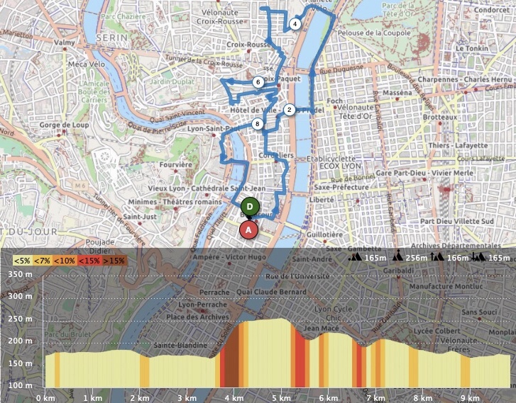 Pour cette étape, comme on avait un peu de temps sur place, on en a profité pour concocter 5 parcours afin de découvrir Lyon. Au final, on en a fait 4 sur les 5 qui étaient prévus et le dernier a été remplacé par une sortie avec Maël (locale rencontrée via les réseaux sociaux) qui nous a gentiment emmené du côté de Fourvière (un tout grand merci à elle). Comme d’habitude, les différents tracés effectués sur place sont disponibles ci-dessous. Ces itinéraires ont été conçus à chaque fois avec l’idée de voir un maximum de choses sur place en quelques kilomètres.