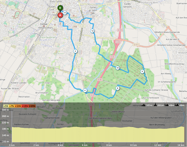 Ce dernier itinéraire permet d’aller faire un tour dans le Sud-Est de Colmar pour profiter des sentiers du parc Vita.